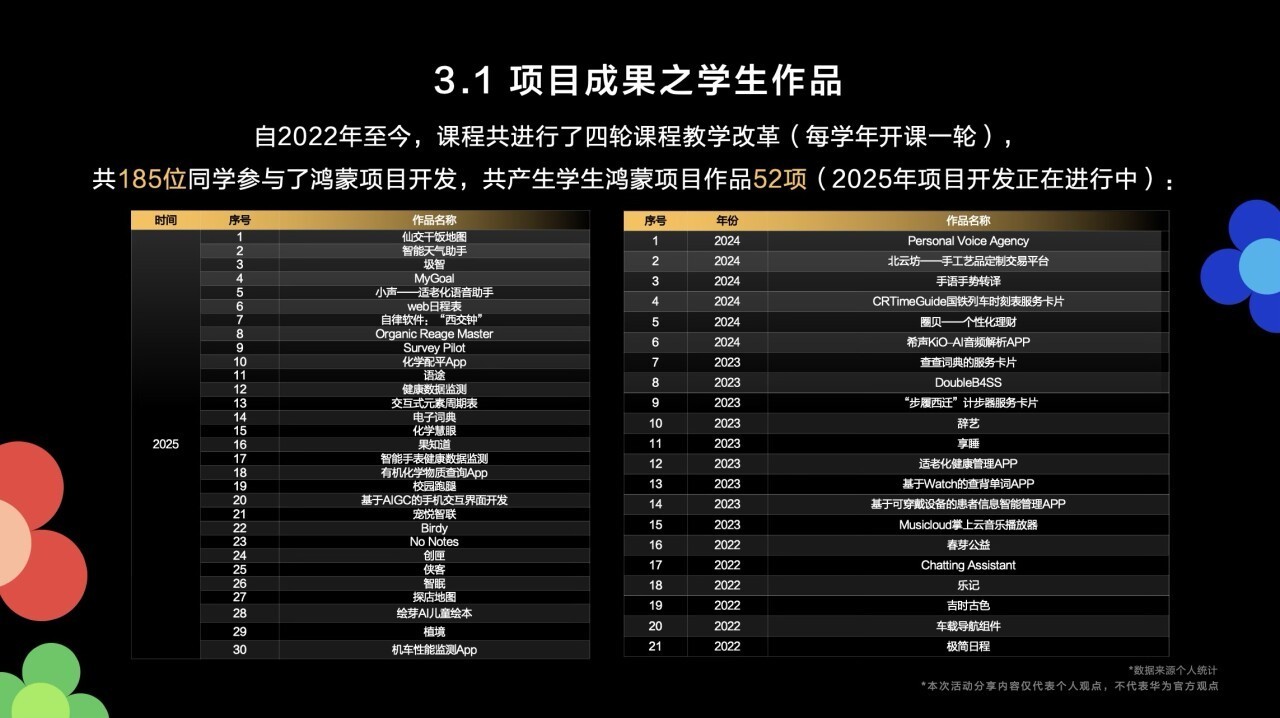 在 HDC 2025 期间,西安交通大学副教授谢涛就提出了「创新教学、产教融合」的策略,并指出自 2022 年至今共四轮课程教学改革过程中,有 185 位同学参与了鸿蒙项目开发,产生 52 项学生鸿蒙项目作品。下一步,西安交通大学还计划继续夯实 HarmonyOS 教育基础,同时借助 AI 开展课程全场景、多维度教学与改革。