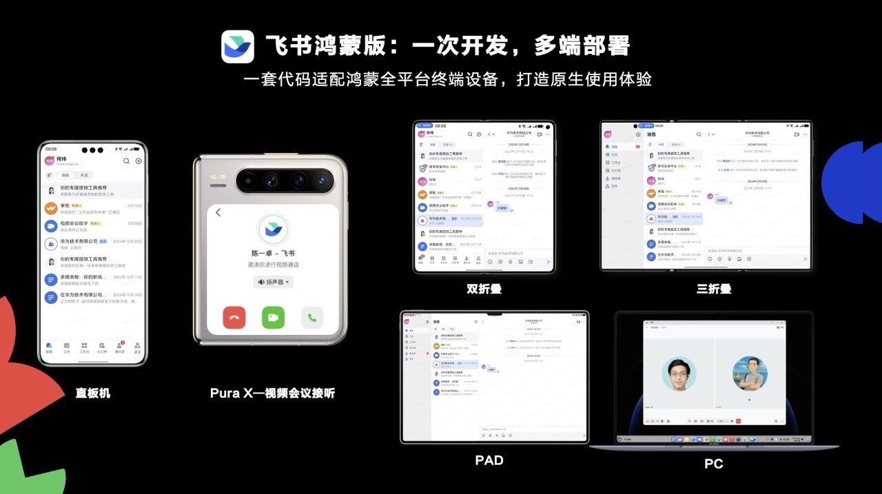 飞书也通过「一次开发,多端部署」,实现了对鸿蒙多形态设备的适配,包括直板手机、折叠屏、平板、电脑等,基于断点系统提供从底栏到宽栏、从单列到三列的界面自适应能力,大幅提升了跨终端的工作一致性体验。飞书产品专家还介绍到,在分布式协同能力上,飞书支持视频会议接续体验、拖拽图片询问小艺以及扫码直达等创新体验,这些都体现了飞书鸿蒙版对鸿蒙能力的深度探索。