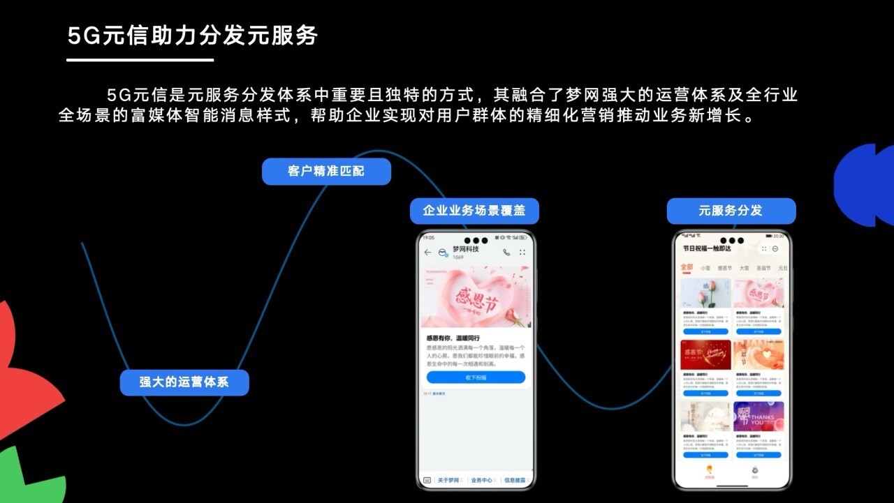在鸿蒙生态中,元服务分发渠道甚至并不局限于负一屏、小艺搜索、卡片流。梦网科技在 HDC 2025 期间就展示了基于「5G + AI + 鸿蒙」升级的 5G 元信,打造了一套覆盖精准推送、互动转化、AI 分析的完整闭环,重点还能实现元服务的分发。