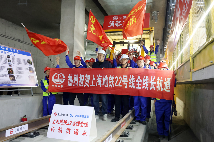 2026年4月21日10点30分,在建地铁崇明岛陈家镇车站内,随着最后一对钢轨完成焊接,上海首条穿越长江的轨道交通22号线(地铁崇明线)实现全线轨道贯通,为后续机电安装、系统联调联试奠定基础,力争2026年底建成。